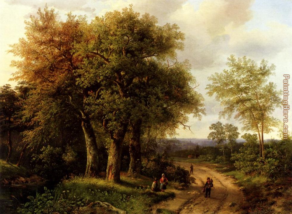 PaintingHere.com offers handmade marianus adrianus koekkoek travellers resting on a wooded path oil paintings at museum quality.
